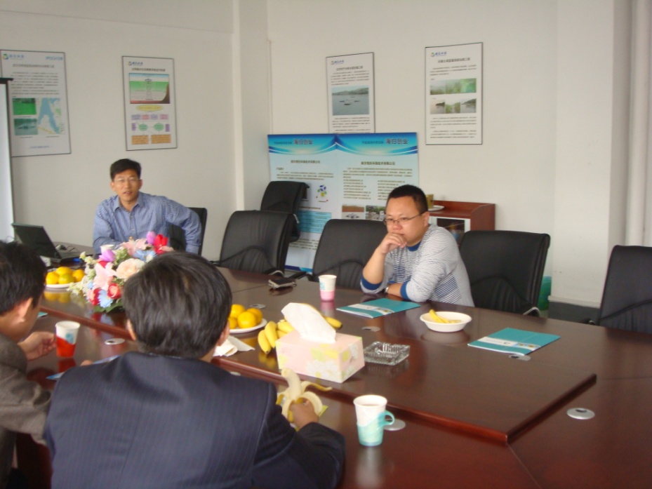 上午会议室405室,我公司总经理孙永健博士详细介绍了我公司水处理技术,其中包括太阳能水生态修复系统的运行机理、水生态重建技术等等。介绍完相关技术后,孙永健博士陪同水利局领导参观了我公司仓库内展示的太阳能水生态修复系统,并就一系列问题达成共识。